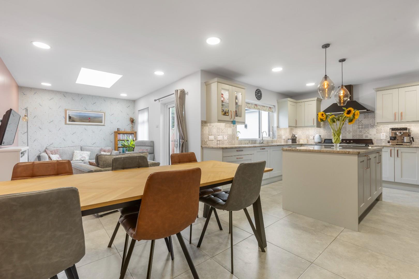 Extending to circa 1,500 sq ft and finished to an exceptional standard throughout, the property comprises four spacious bedrooms with master with ensuite, two separate reception areas including a sunroom off the kitchen with media wall, a luxury kitchen/dining area with granite worktops, contemporary family bathroom, utility room and separate shower room.