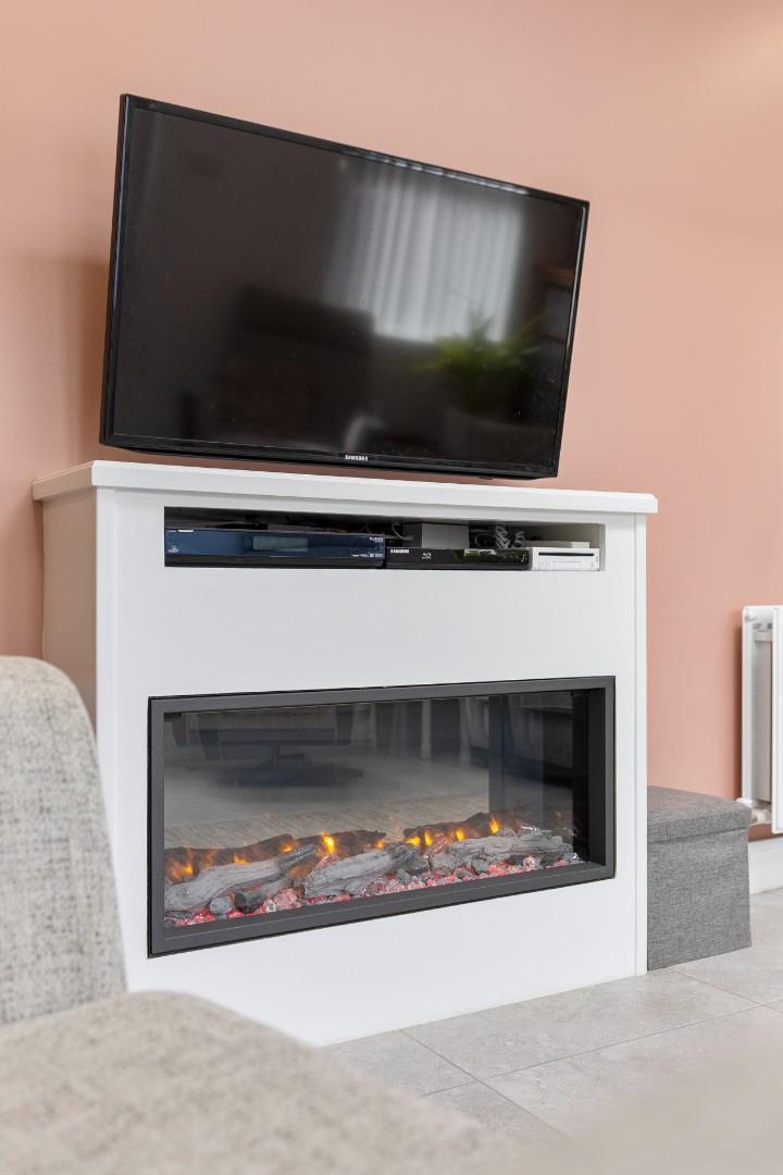 – Sunroom with bespoke media wall and electric fire feature