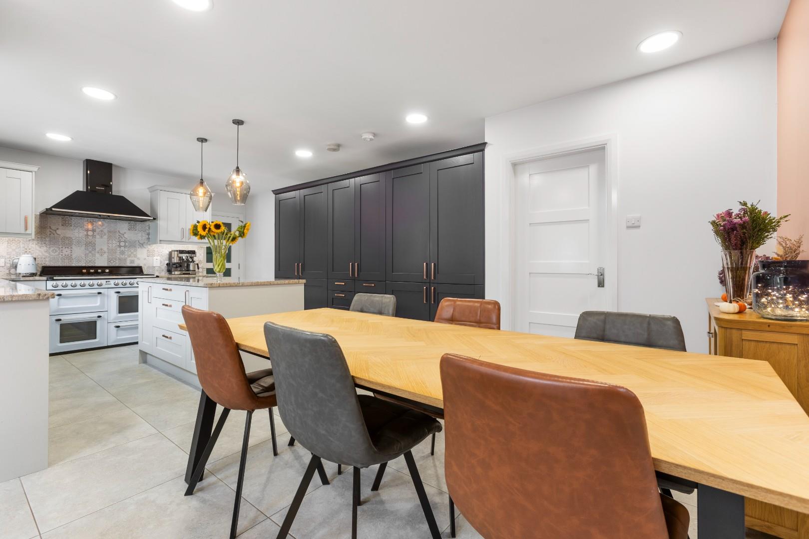 The recent extensions and modernisation offers high quality finishes including solid painted kitchen, LED feature lighting, smart home heating controls, and extensive built-in bedroom furniture.