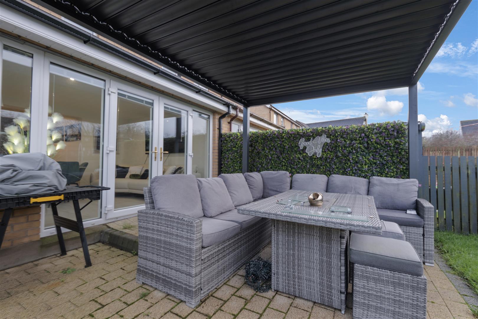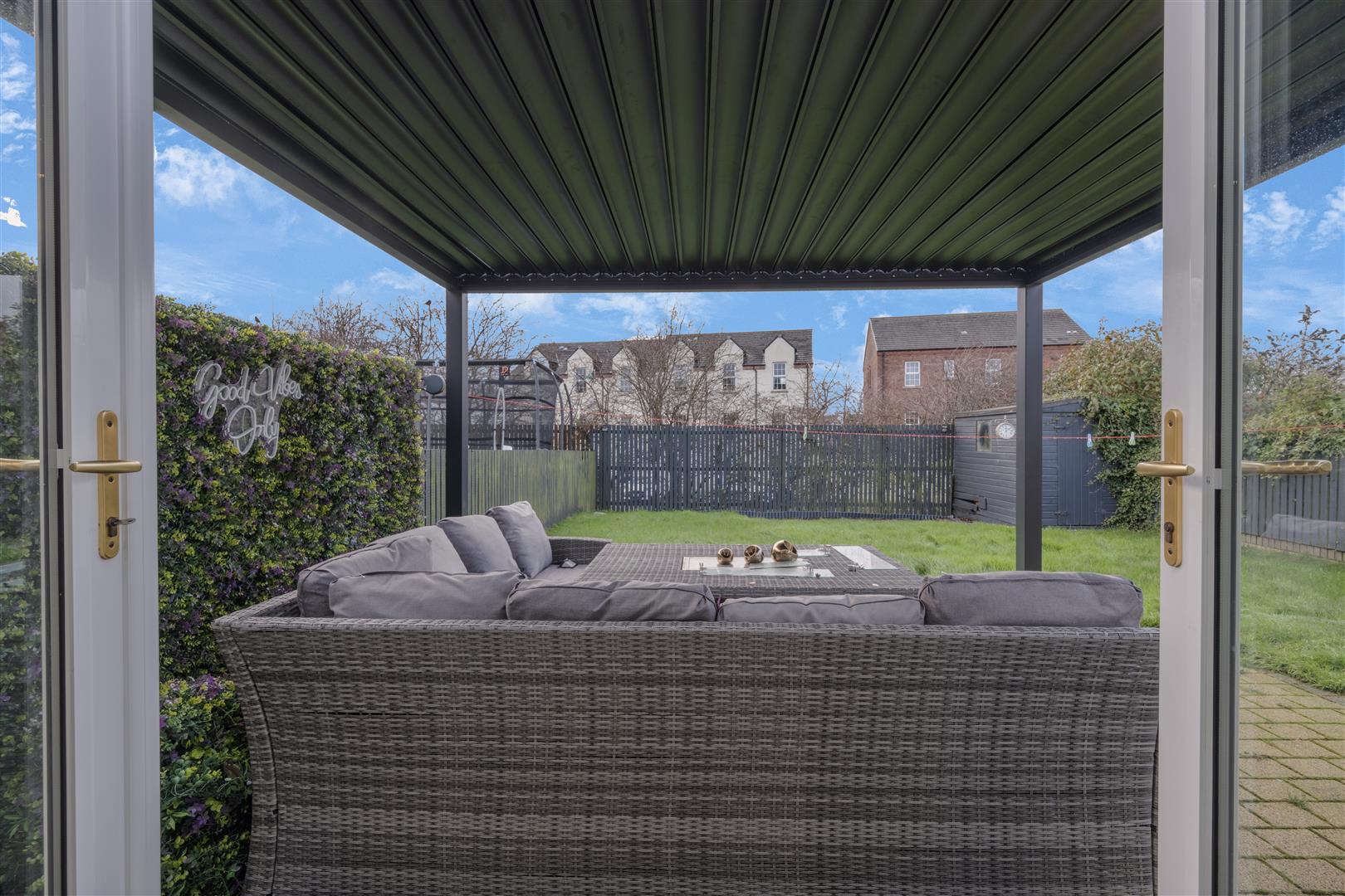 Externally, the property is further enhanced by a private rear garden with decorative paved patio and a covered seating. A detached metal shed with roller shutter door offers further storage or workshop potential. Located close to local amenities, schools and commuter routes, this immaculately maintained home will appeal to a wide range of buyers seeking style, space and quality in a convenient setting.