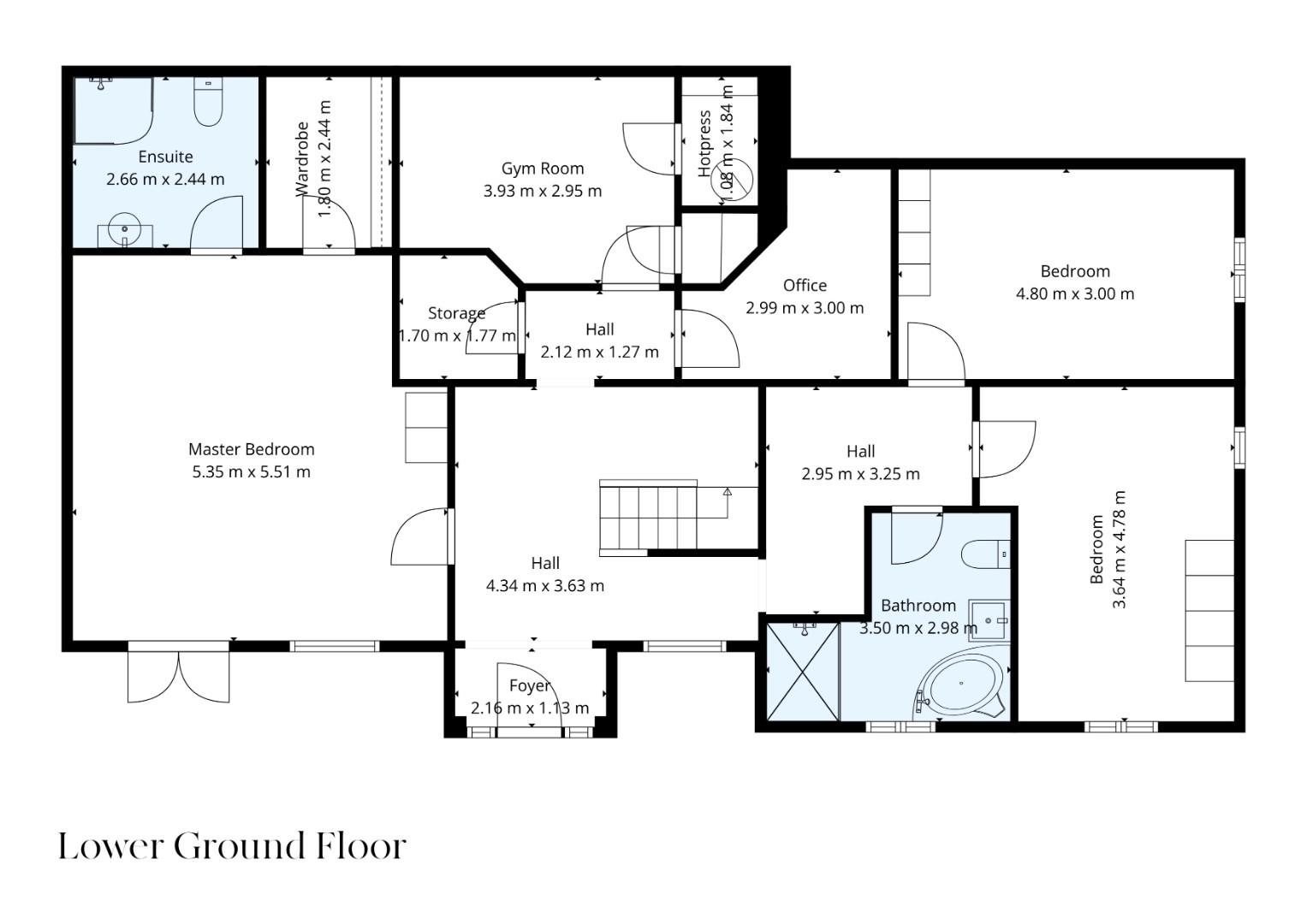 The lower ground floor provides extensive bedroom accommodation, accessed from a spacious landing and offering large double bedrooms, with master ensuite, along with a family bathroom and ample storage.