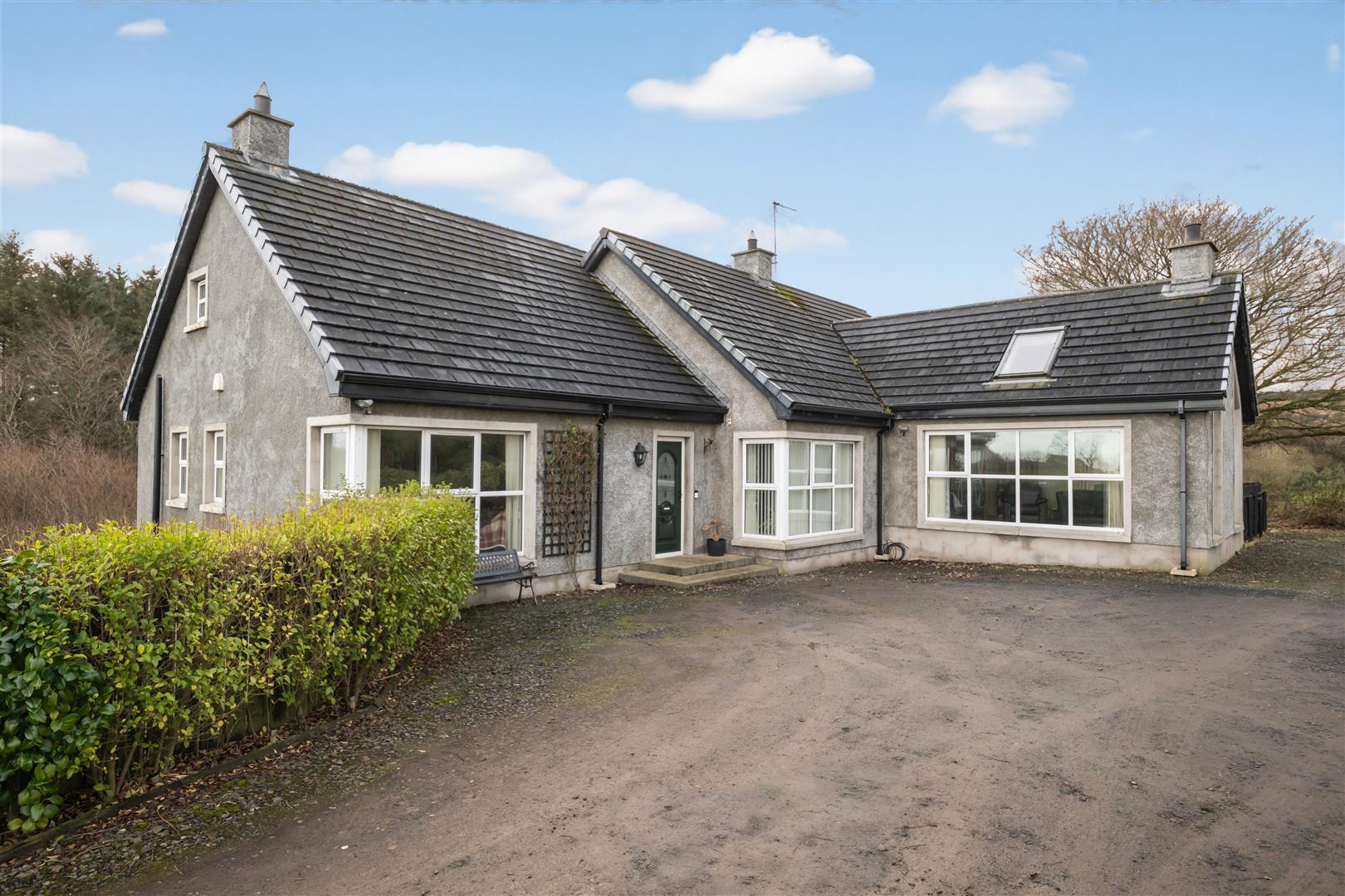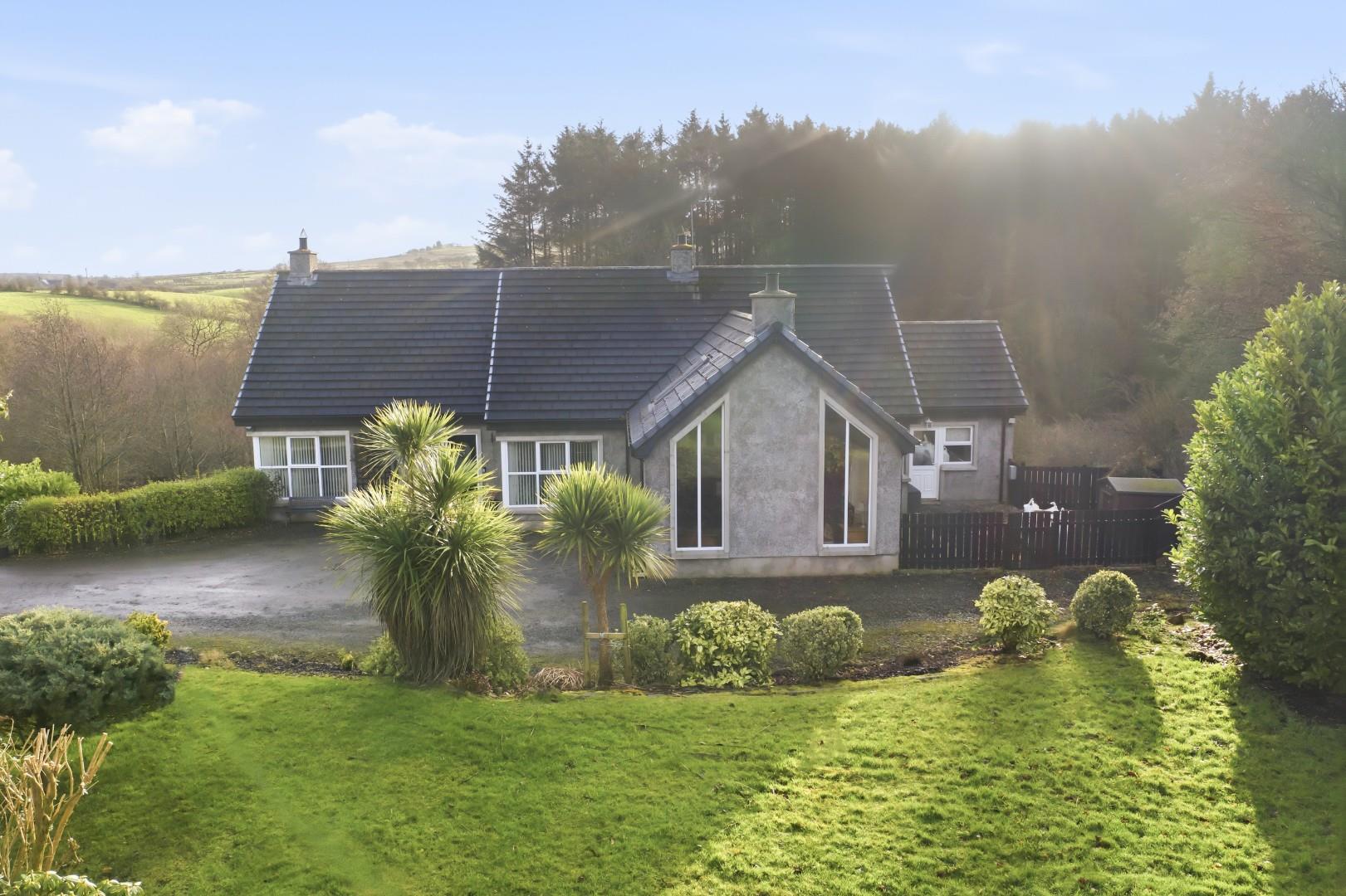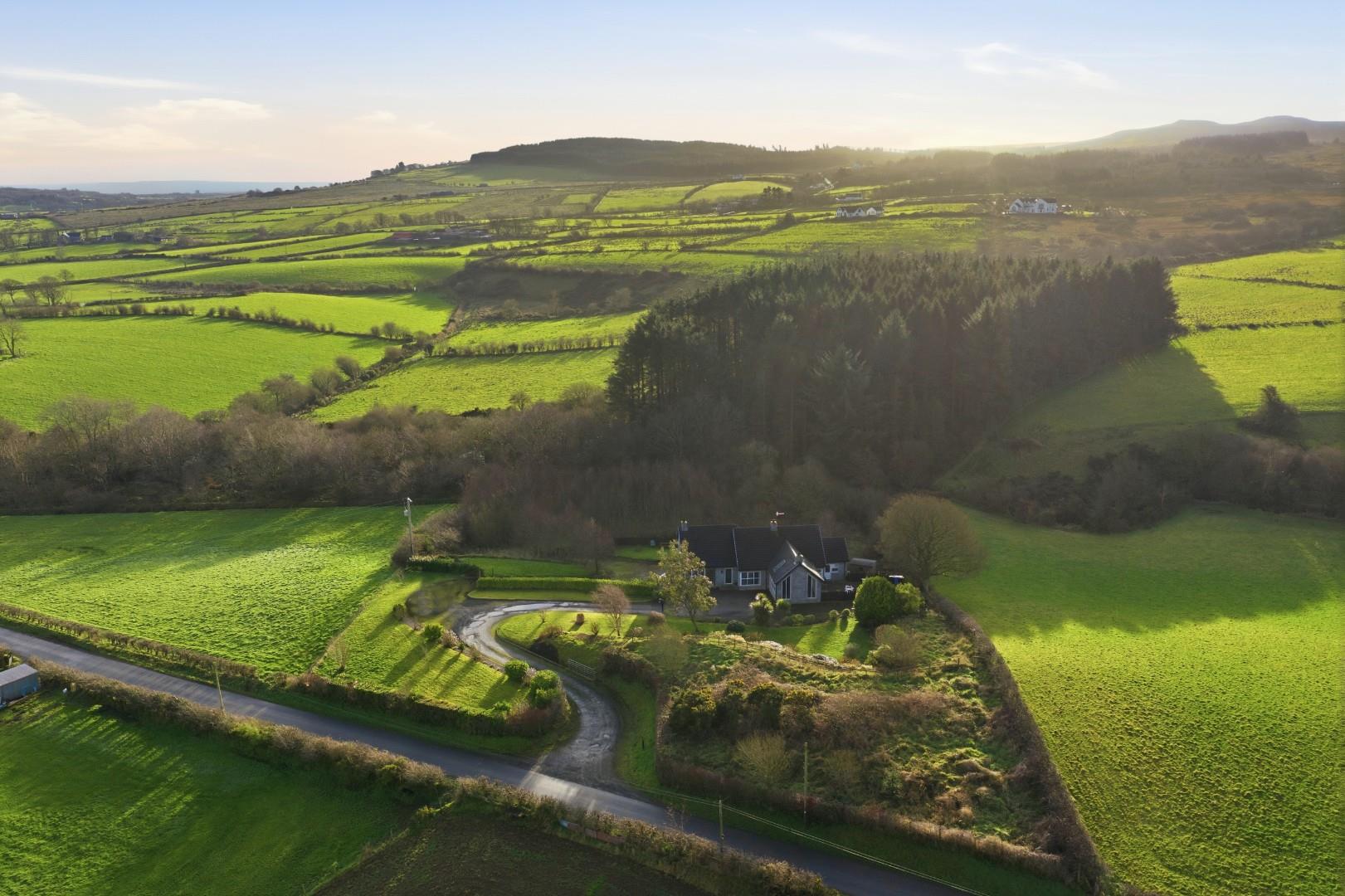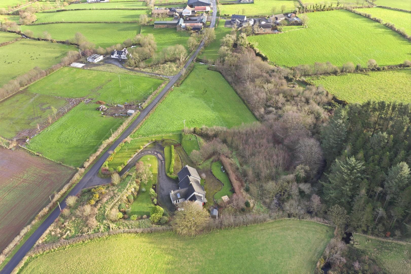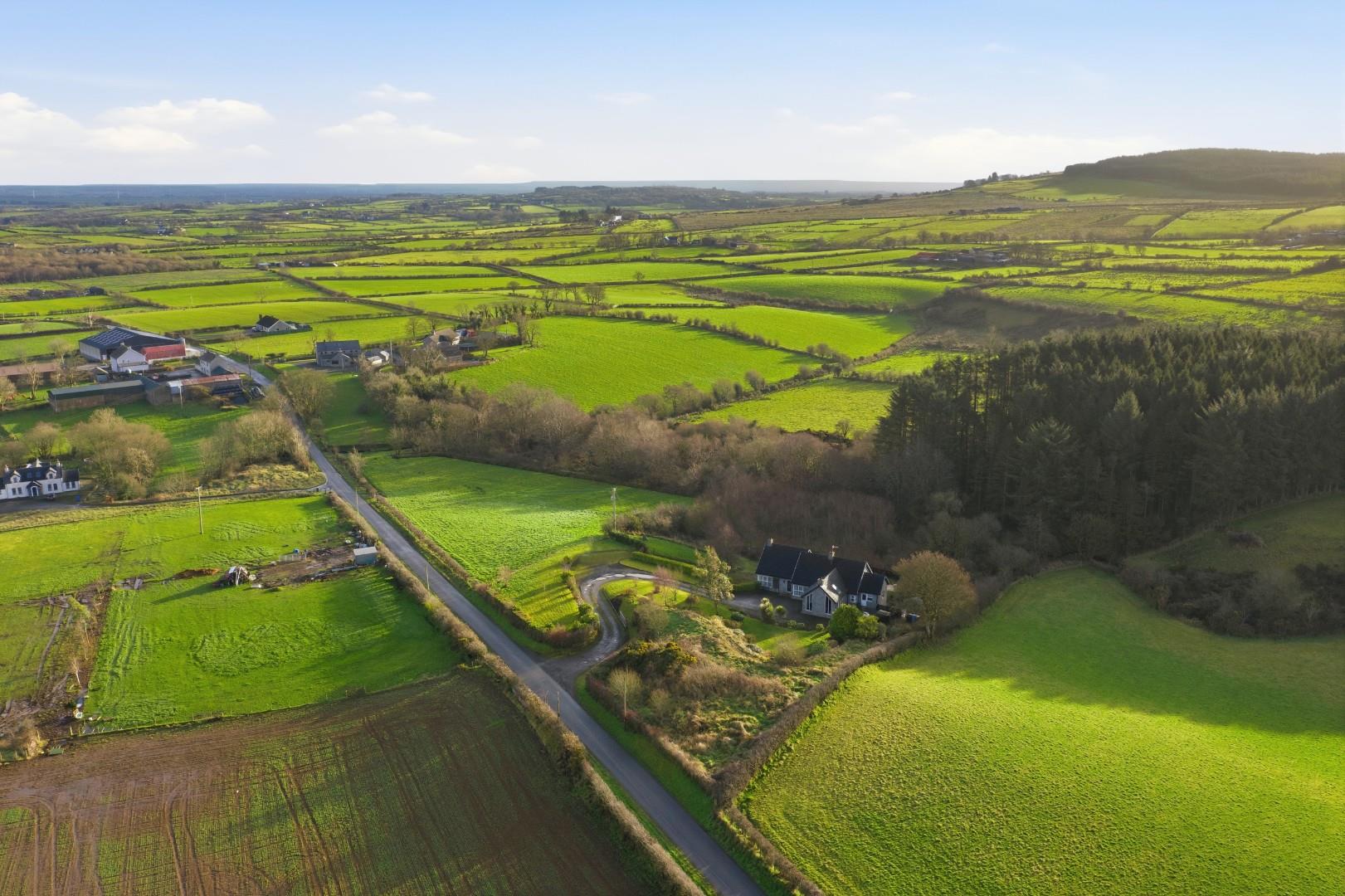 – Substantial detached rural residence set on an elevated and highly private site extending to approximately 2.5 acres, incorporating mature lawns, established woodland and a natural stream – Full solid block construction with bison slabs and concrete staircases, providing excellent structural integrity and long-term durability – Generous and versatile accommodation extending to approximately 3,250 sq ft, thoughtfully laid out over two floors – Designed with future adaptability in mind, including loft space prepared for potential second-floor conversion, featuring bespoke high cross-beam trusses, plumbing, power and gable-end windows already installed – Folding drop-down staircase incorporated within the loft hatch for ease of access – Three spacious reception rooms complemented by a large open-plan kitchen and dining area, forming the central hub of the home – Feature sunroom offering a strong connection between the internal living space and the surrounding countryside – Extensive ground floor ancillary accommodation including a large laundry room with, pantry storage, dedicated office space, separate dining room and downstairs WC – Multi-zone heating system with three independently controlled zones covering upper floor, lower floor and hot water – Independent back-up power supply with petrol generator and mains switchover, providing continuity in the event of power outages – High-speed fibre optic broadband connection direct to the router, suitable for home working or guest use – Living room pre-wired for surround sound – Hard-wired CCTV external camera system, burglar alarm with access panels on both levels and within the principal bedroom, and external security sensor lighting – External power supply to garden areas and outbuildings, with cabling installed for potential driveway lighting, electric gates or additional external features – Extensive parking provision and a sweeping approach enhancing privacy and arrival – While ideally suited as a substantial private family home, the scale, layout and setting also lend themselves naturally to owner-operated guest accommodation, offering a genuine lifestyle opportunity