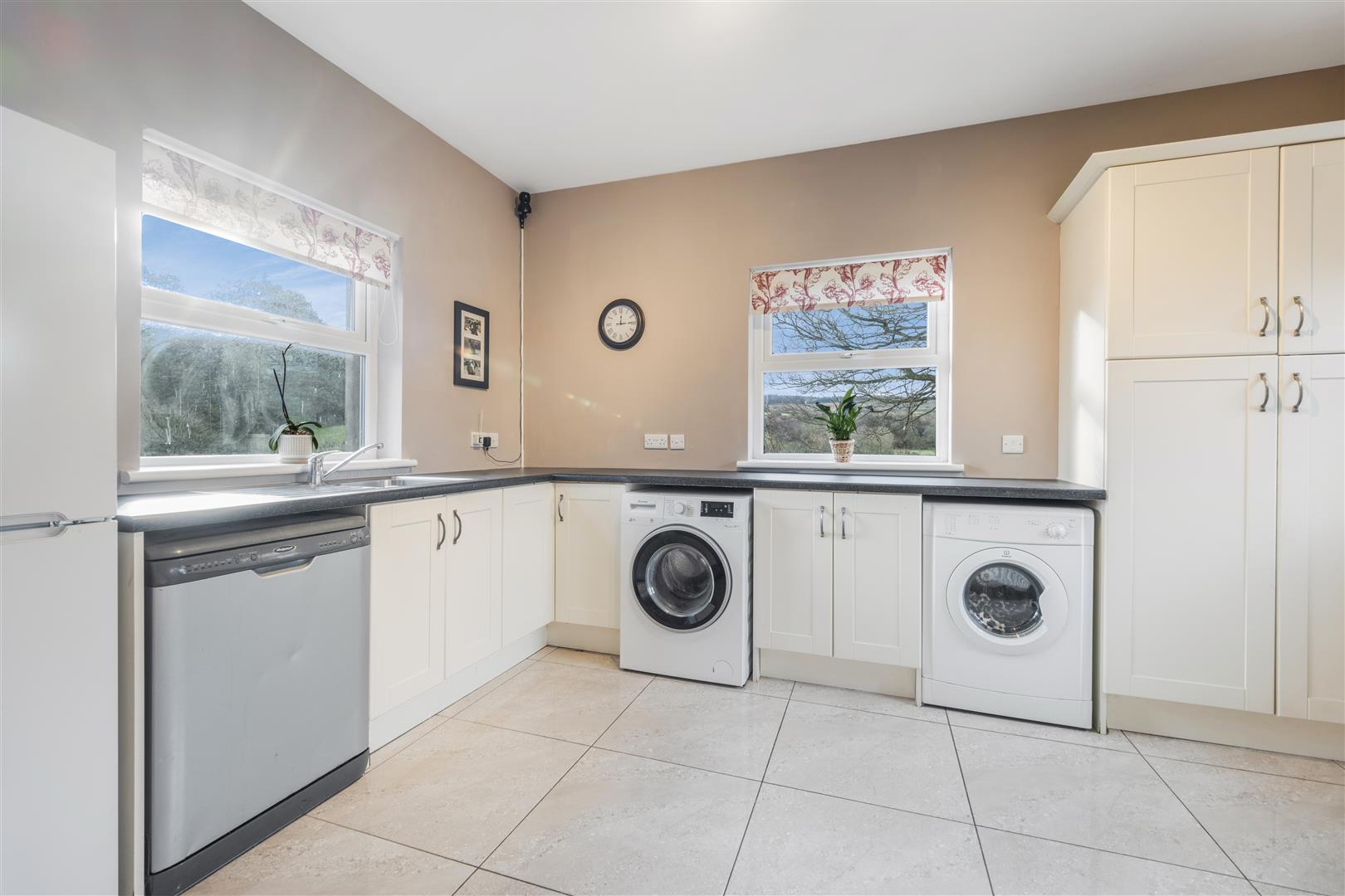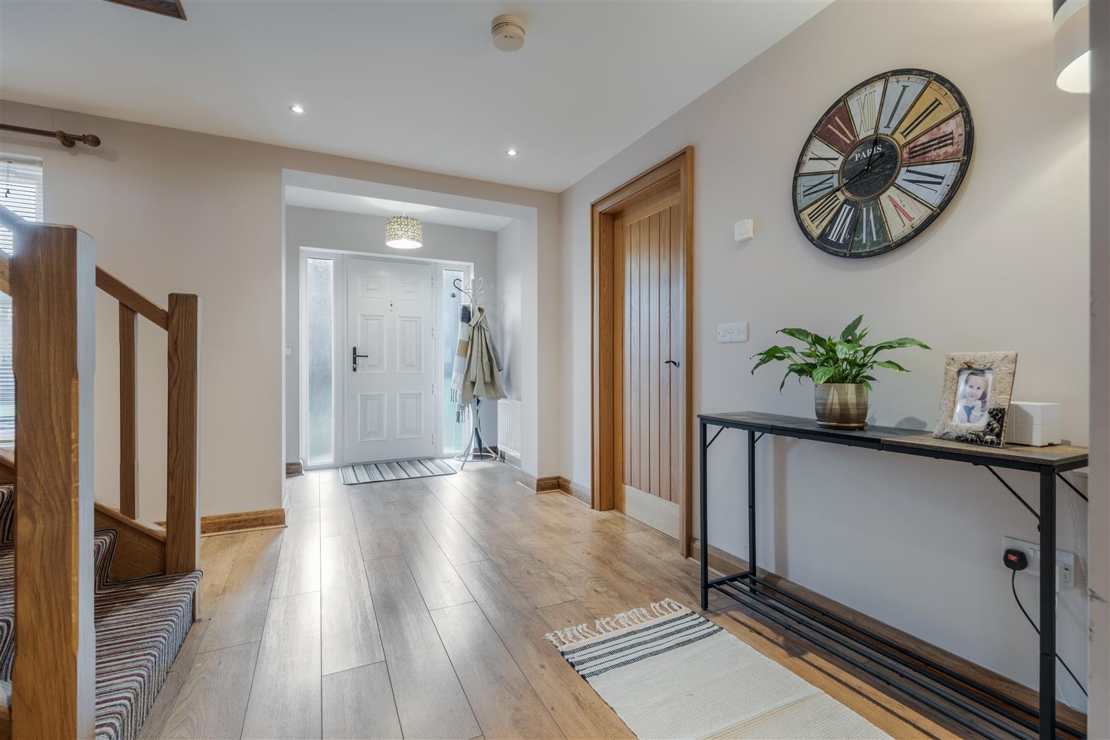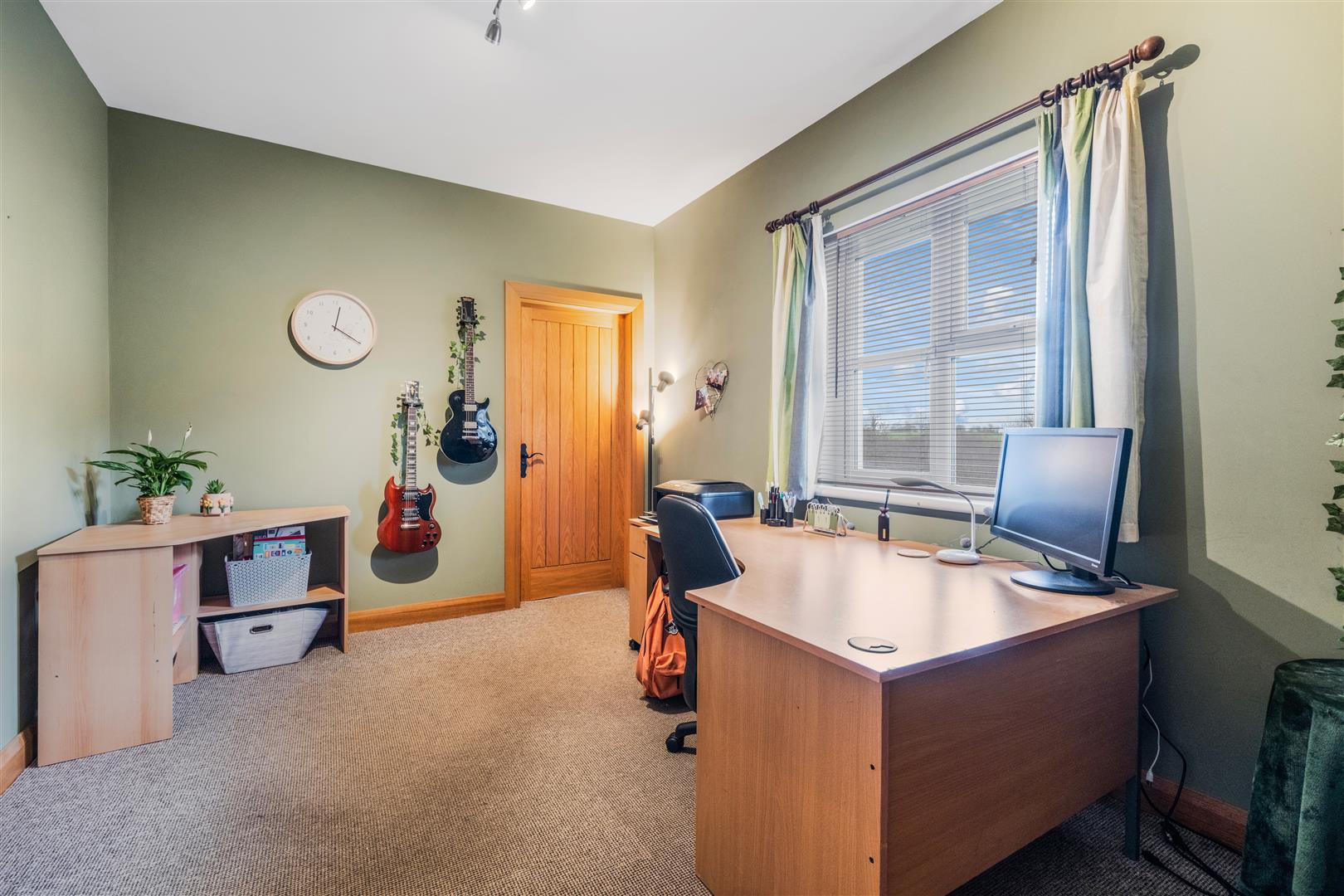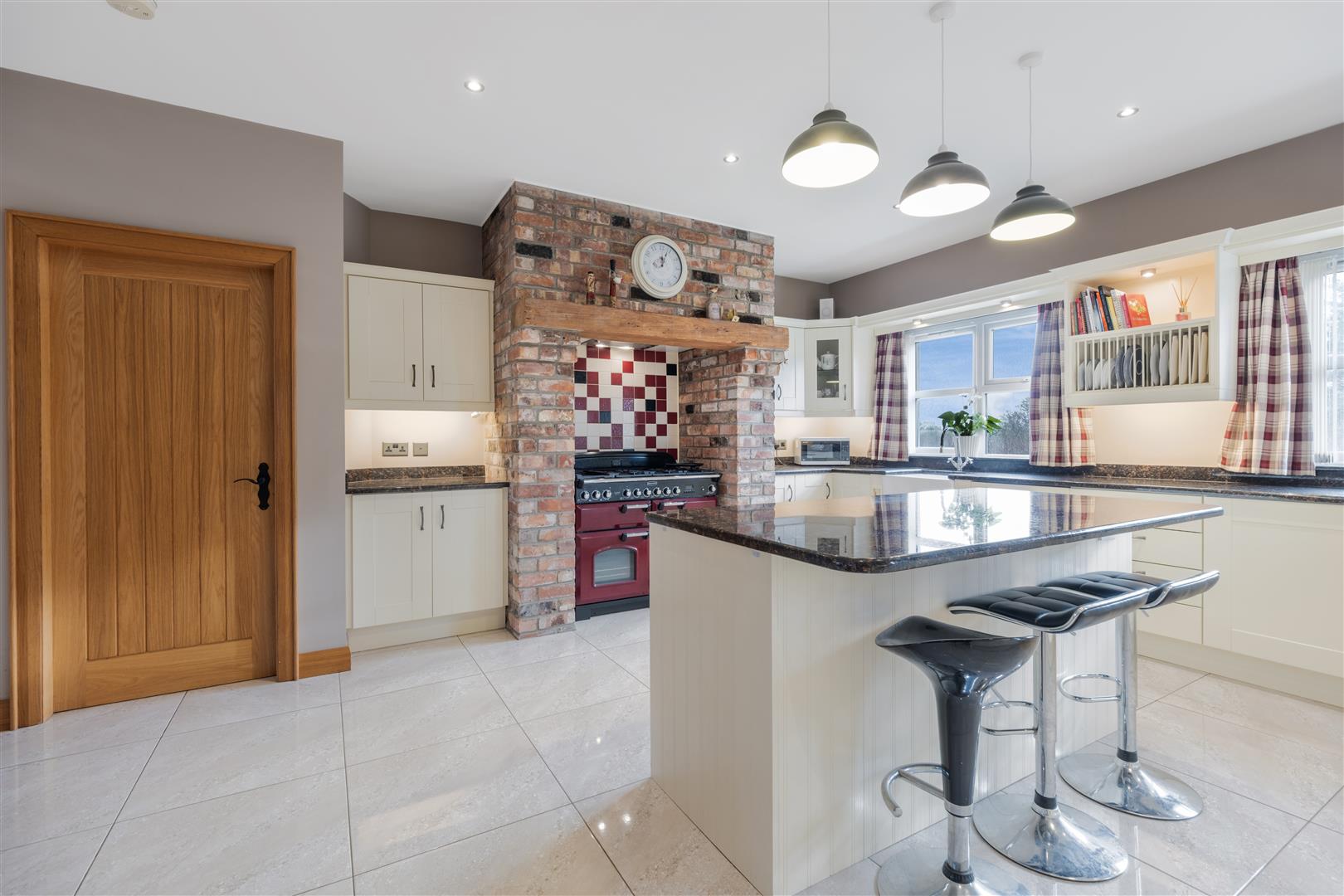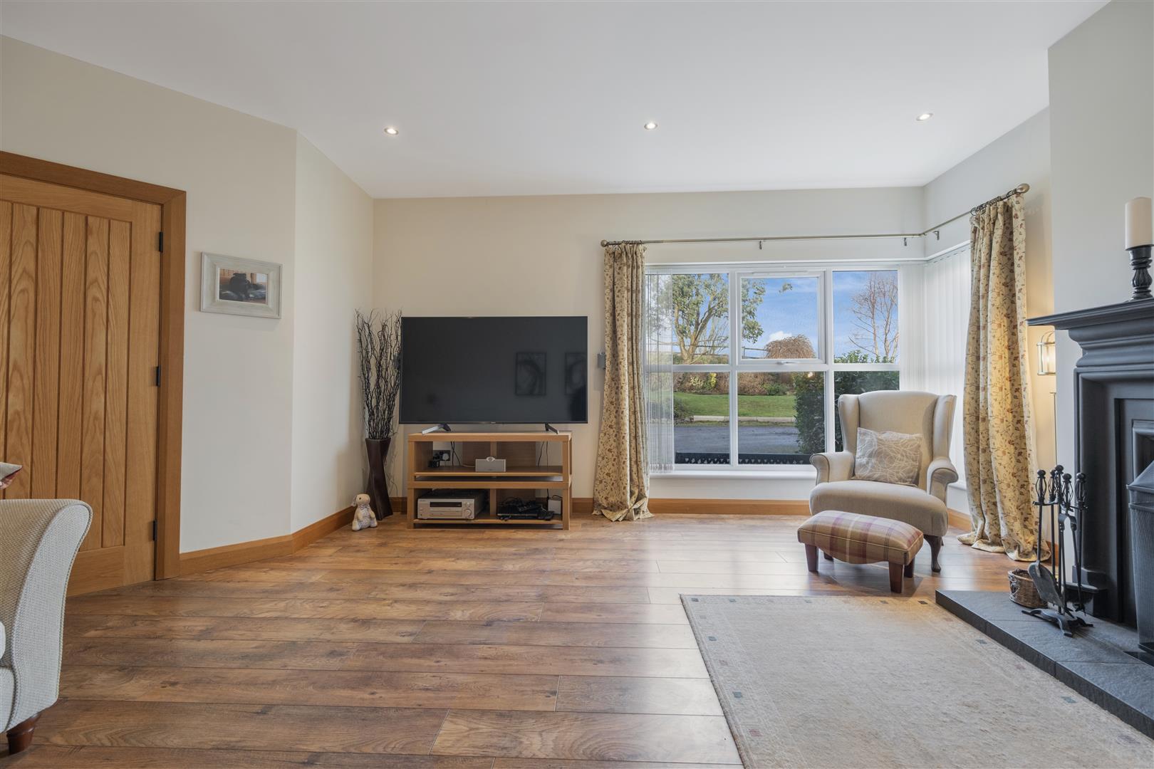 – Substantial detached rural residence set on an elevated and highly private site extending to approximately 2.5 acres, incorporating mature lawns, established woodland and a natural stream – Full solid block construction with bison slabs and concrete staircases, providing excellent structural integrity and long-term durability – Generous and versatile accommodation extending to approximately 3,250 sq ft, thoughtfully laid out over two floors – Designed with future adaptability in mind, including loft space prepared for potential second-floor conversion, featuring bespoke high cross-beam trusses, plumbing, power and gable-end windows already installed – Folding drop-down staircase incorporated within the loft hatch for ease of access – Three spacious reception rooms complemented by a large open-plan kitchen and dining area, forming the central hub of the home – Feature sunroom offering a strong connection between the internal living space and the surrounding countryside – Extensive ground floor ancillary accommodation including a large laundry room with, pantry storage, dedicated office space, separate dining room and downstairs WC – Multi-zone heating system with three independently controlled zones covering upper floor, lower floor and hot water – Independent back-up power supply with petrol generator and mains switchover, providing continuity in the event of power outages – High-speed fibre optic broadband connection direct to the router, suitable for home working or guest use – Living room pre-wired for surround sound – Hard-wired CCTV external camera system, burglar alarm with access panels on both levels and within the principal bedroom, and external security sensor lighting – External power supply to garden areas and outbuildings, with cabling installed for potential driveway lighting, electric gates or additional external features – Extensive parking provision and a sweeping approach enhancing privacy and arrival – While ideally suited as a substantial private family home, the scale, layout and setting also lend themselves naturally to owner-operated guest accommodation, offering a genuine lifestyle opportunity