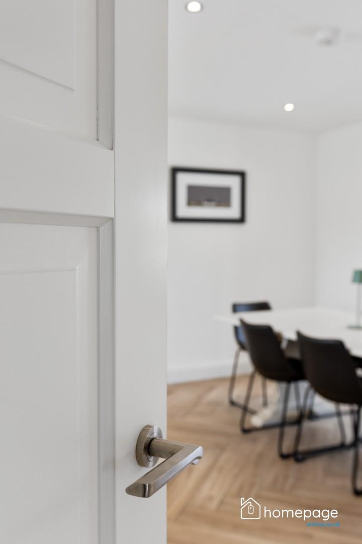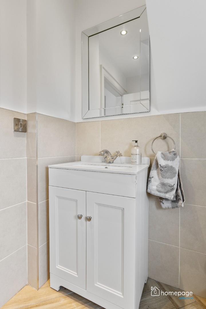 A spacious, well-ventilated boot room with high ceilings offers excellent potential for the installation of a pulley maid clothes airer or a storage loft. The ground floor also includes a bright and airy living room and a downstairs W.C.