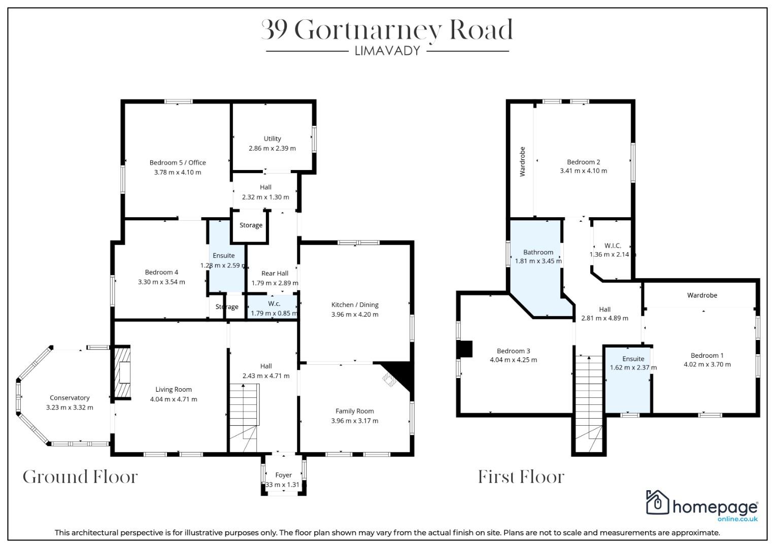 The ground floor comprises a welcoming entrance foyer, bright living room, family room, conservatory, open plan kitchen / dining area, utility room, W.C., and two additional versatile rooms including a ground floor bedroom and office / bedroom 5, offering excellent flexibility for growing families or those working from home.