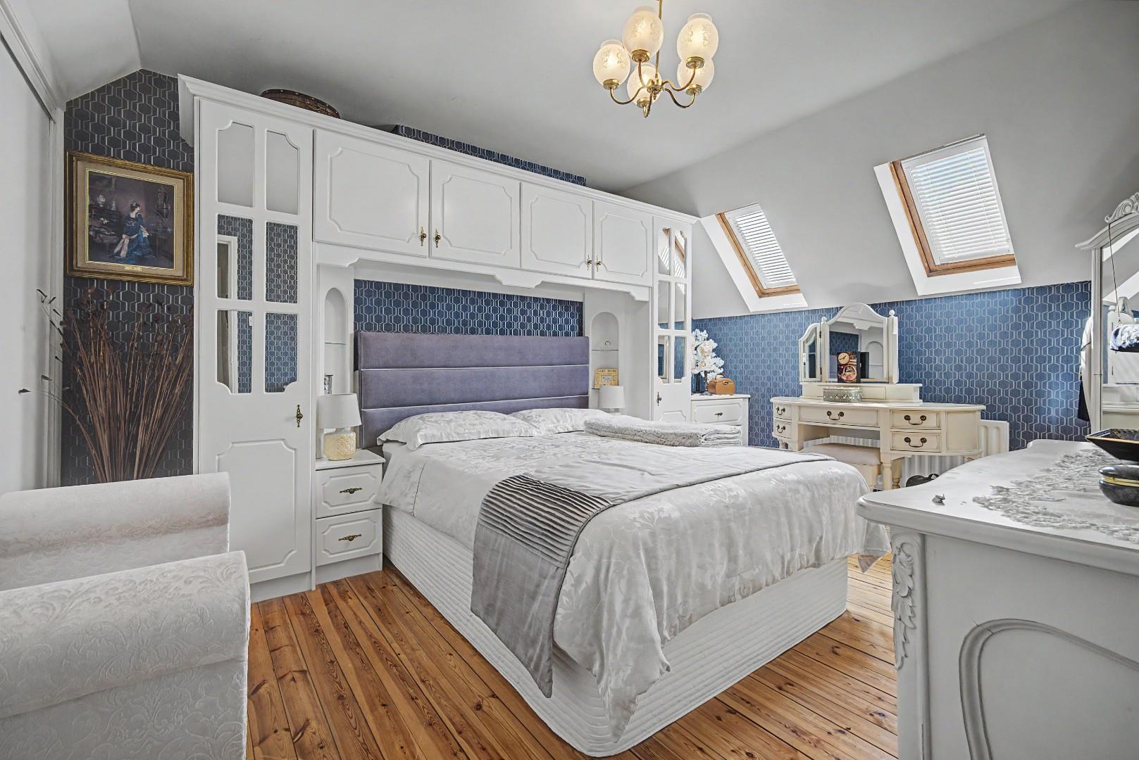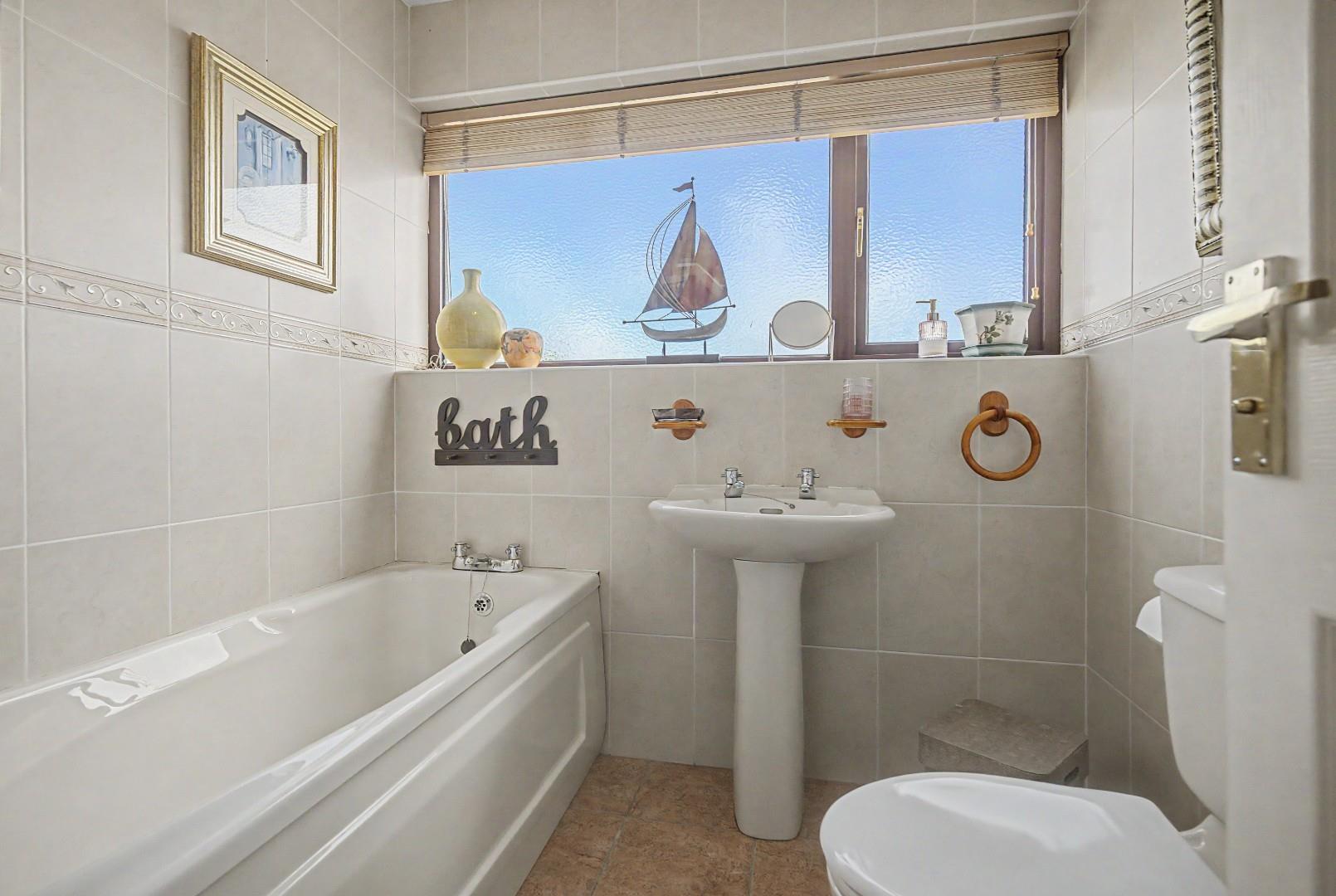 Accessed via a tarmac driveway providing parking for multiple vehicles, this well-maintained chalet bungalow offers generous living and sleeping accommodation, complemented by a large, private, enclosed rear garden.