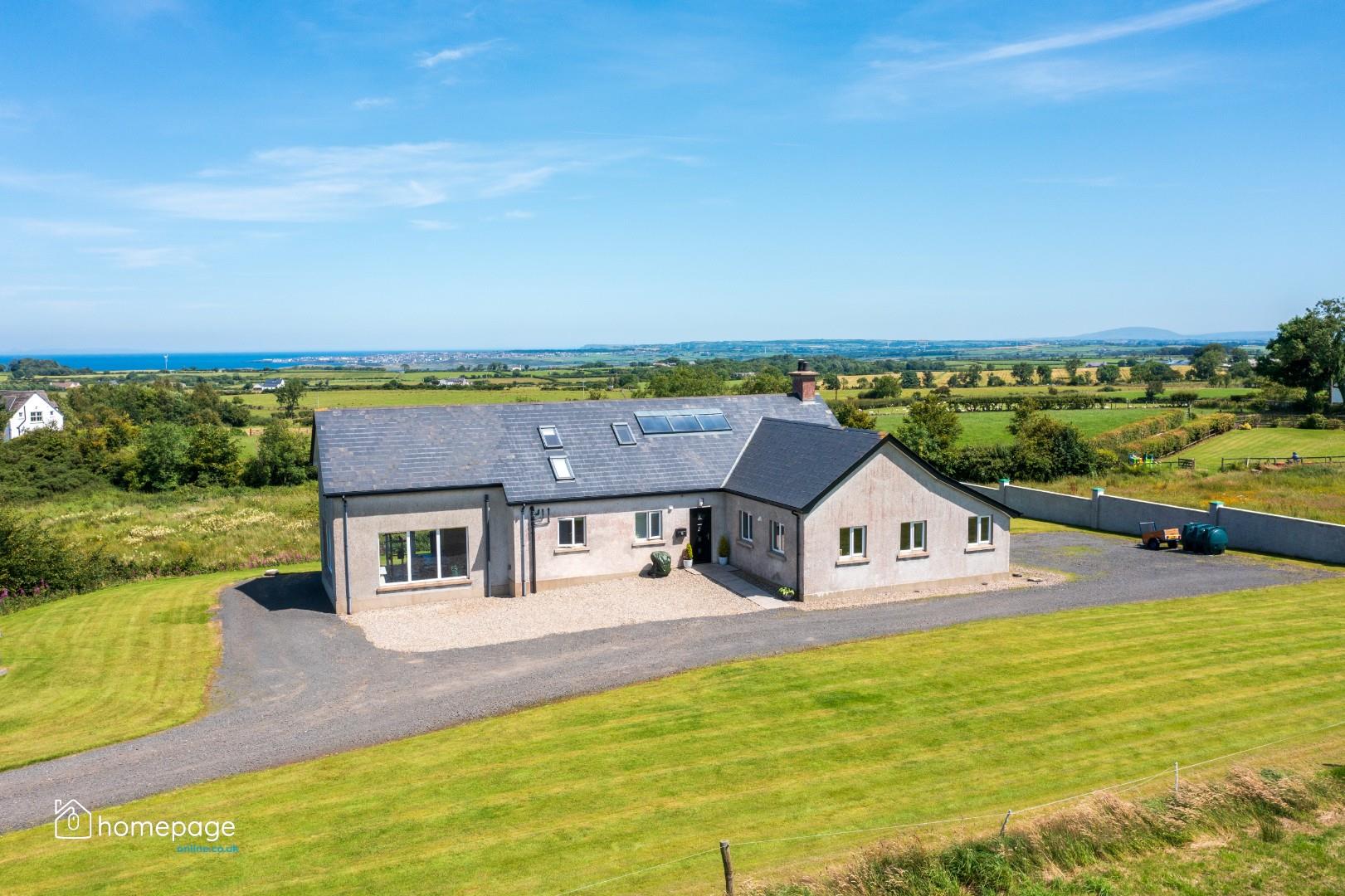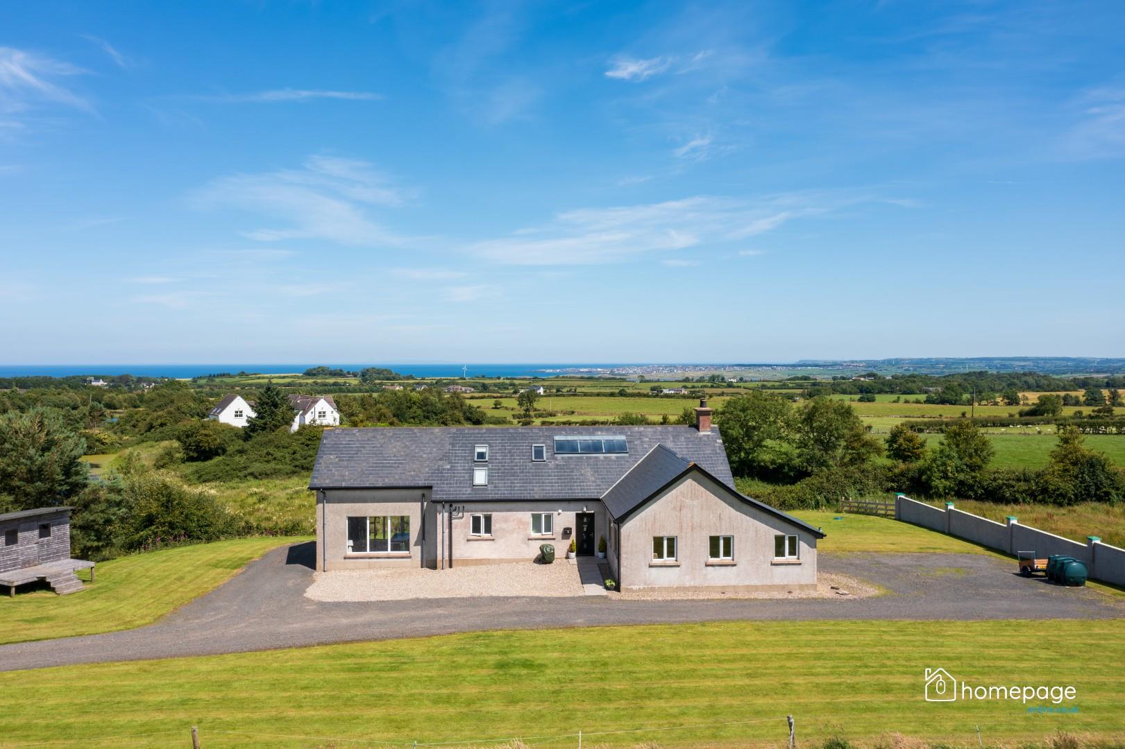 Homepage Estate Agents are delighted to offer for sale this exceptional 5 bedroom detached family home, occupying a beautifully elevated site with panoramic views across the surrounding countryside and coastline, just 2 miles from Castlerock village. Rarely does a property of this calibre come to the market, combining modern luxury with a spacious, well-considered layout designed for flexible family living.