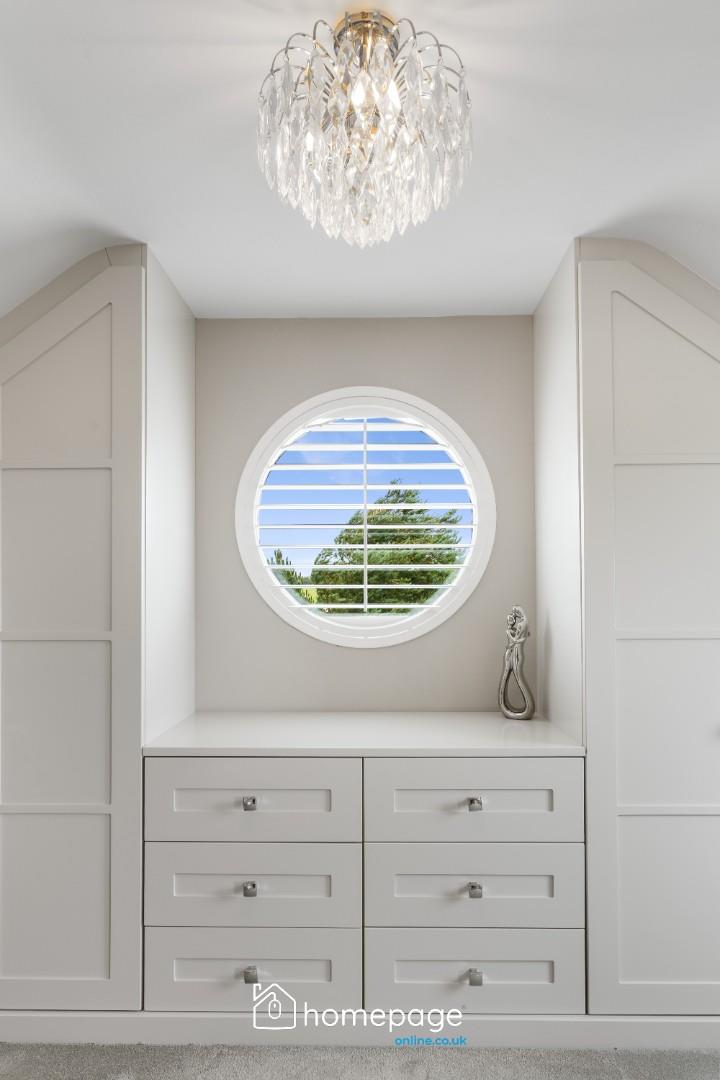 – Feature round window with hardwood shutter blind
