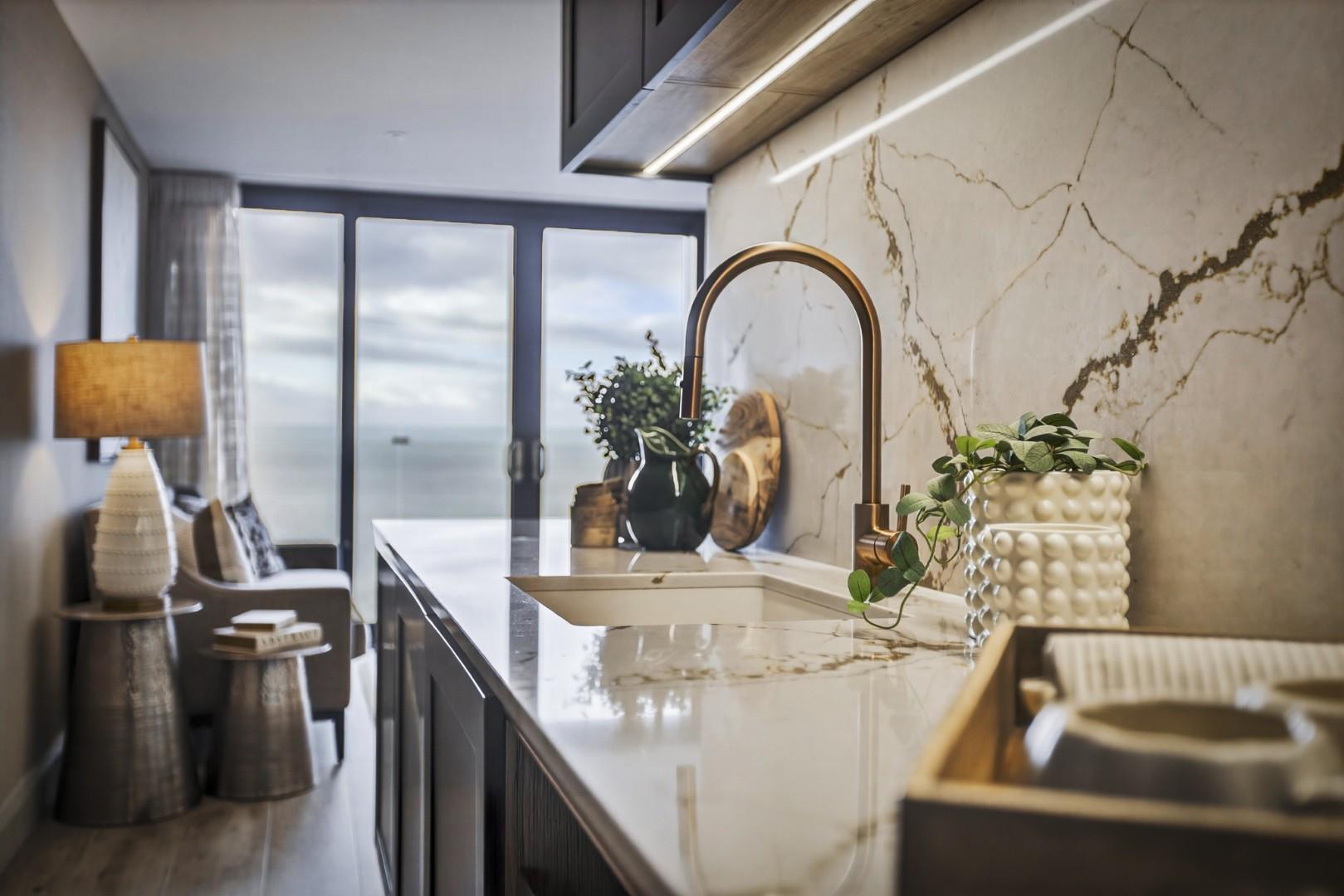 This exceptional 2 bedroom apartment features open-plan living with breathtaking sea views, a fully equipped modern kitchen, ample storage, two generous bedrooms (with rear balcony linking both bedrooms), and a stylish family bathroom.